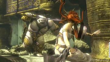 TA: El tipo de bloqueo que hemos querido introducir resulta un sistema más complejo que el de la mayoría de juegos del género a pesar de no contar con un botón específico. En el estado normal Nariko bloquea automáticamente los ataques normales, en cualquier dirección, pero si un enemigo te ataca con un golpe poderoso, algo que verás porque le rodea un aura amarilla, debes cambiar rápidamente al estilo fuerte para evitar que te dañe pulsando rápidamente R1. Sólo así Nariko bloqueará el ataque. En largas distancias también puedes usar el bloqueo, pero debes usar la Heavenly Sword como hojas encadenadas para desviar los proyectiles con tus golpes. Es un sistema que te obliga a estar en tensión contínuamente, presionando el botón adecuado para protegerte. En realidad creo que es un acercamiento diferente, y que aún no haciendo uso de un botón específico, no es en absoluto simple.