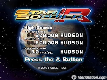 La serie de aviación y disparos de Hudson desembarca en WiiWare con tres sistemas de control diferentes. Manejar a la nave y disparar a lo largo de frenéticos escenarios será posible con el mando clásico, el mando de Wii en posición horizontal o la pareja Wiimote y nunchako. Cualquiera de los controles es válido para participar en las partidas rápidas y dinámicas de este Star Soldier preparado para llegar y jugar sin complicaciones gracias a sus modos de juego con límite de tiempo de dos y cinco minutos.