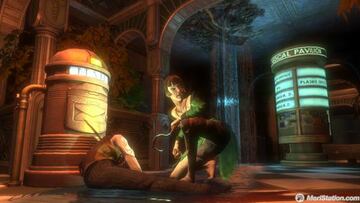 'Me llamo Andrew Ryan y tengo una pregunta que hacerte'... así comienza la inmersión a un guión que mezcla pensamientos políticos, médicos, filosóficos y artísticos. Mezclados en un entorno, Rapture, que desprendía belleza y terror en cada losa de su suelo, en cada escaparate, en cada fuente o bar. Bioshock contaba una historia apasionante sin cinemáticas, solo a través de panfletos y cintas de cassette desperdigadas por el mapeado, que nos daban a conocer la auténtica naturaleza de los habitantes de una mastodóntica idea llevada a cabo tras la segunda guerra mundial por un hombre que creía en un mundo, a su juicio, mejor.
