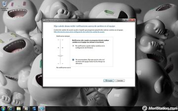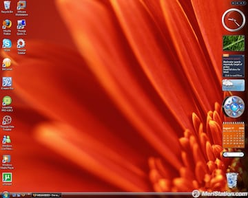 Nada más acabar la instalación, nos encontramos con un prístino fondo de pantalla, con ése azul que tanto le gusta a Microsoft. Los psicodélicos, por llamarlos de alguna forma, fondos que había disponibles en el RC, siguen sin embargo ahí y en apenas dos clics podremos adaptarlo a nuestros gustos. Fondos aparte, lo que más llama la atención es la nueva Barra de Tareas. Una cosa es segura, que no deja a nadie indiferente. Habrá a quien le encante y habrá quien la acabe odiando. Personalmente, nos ha enamorado. Ventanitas que nos permiten mirar qué hay sin necesidad de maximizar, posibilidad de asociarles archivos abiertos con frecuencia, un icono por programa que hace que todo quede junto y no se pierdan ventanas por ahí...