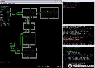 Sin embargo, esto significa que nos encontramos ante un título muy complejo, sobre todo a la hora de usar el teclado (método de entrada exclusivo) y descifrar el significado de las letras en pantalla. Existen paquetes que sustituyen los mismos por tilesets' y sprites', bastante útiles para los menos adeptos a los rogue-like'. El teclado numérico se utiliza para mover al personaje, y cada letra tiene asociada una acción (que cambia si la pulsamos en minúsculas o mayúsculas) A cambio, un título con una libertad enorme, necesidad de comer y beber, rezar a nuestros dioses, tratar con los PNJ's, acampar en medio del camino o escondernos, crear objetos, magia Solamente para los más atrevidos, pero de seguro que serán bien recompensados. Por cierto, en la página oficial encontraréis ports' a varias plataformas más.