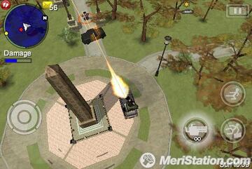 Los controles se adaptan a los clásicos botones virtuales de los dos dispositivos de Apple, es decir, tendremos un joystick y tres botones de acción virtuales en pantalla. A pesar de ser un tipo de control muy atractivo, no termina de responder como nos gustaría; los botones son pequeños y en muchas ocasiones, estaremos más pendientes de si pulsamos correctamente el botón deseado a lo que ocurre realmente en pantalla. Mientras caminemos, tendremos disponibles los botones de acción para disparar, golpear, robar un vehículo o lo que convenga. Para conducir, los botones se convertirán en un acelerador y un freno. Navegar por los menús es otro problema en muchos títulos de iPhone e iPod Touch; muchas veces será muy engorroso movernos por las diferentes pantallas con soltura.