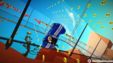 Este título se enmarca en el género de conducción, pero, obviamente, dada la naturaleza del periférico, nos acerca a él de una forma nunca vista hasta ahora: el coche somos nosotros mismos. Para simular que conducimos, colocaremos las manos como si estuviéramos manejando un volante. Bastará con que giremos este ficticio volante de un lado a otro para que lo haga el vehículo en la pantalla y, aunque no podamos acelerar o frenar, las posibilidades en cuanto al control no se terminan aquí. Doblando los brazos hacia detrás y lanzándolos hacia delante rápidamente activaremos un turbo e inclinando nuestro cuerpo en las curvas derraparemos. Además, en los muchos momentos que nuestro coche vuele por los aires, podremos realizar todo tipo de acrobacias.