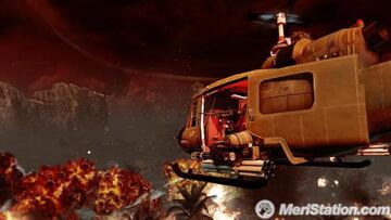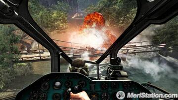 Veremos texturas planas y de baja resolución, partículas en explosiones y elementos derivados que están bastante por detrás de lo que se puede esperar en 2011, incluso bajones de framerate. Pero esto no importa. No importa porque en el conjunto, desde Modern Warfare han demostrado ser efectivos. El conjunto se ve convincente. La llamarada estará pixelada, pero esa explosión combinada con encuadres de cámara concretos, unión de situaciones y scripts que nos hacen no poder estar atentos al detalle, sino seguir lo que pasa en pantalla como podemos. El mismo caso que si nos situamos en el barco en pleno diluvio de Modern Warfare, el conjunto puede con los detalles. En Black Ops, cuando intentamos escapar de Vietnam no podemos estar pendientes de nuestros enemigos solo, sino también de las explosiones alrededor nuestra -que se funden con la de los tanques que nos atacan por ejemplo- el griterío de los soldados que van apareciendo y nuestros movimientos. No hay tiempo para detectar que es efectista pero no perfectamente detallado. Y seguramente los desarrolladores creen no necesitar más consiguiendo todo esto.