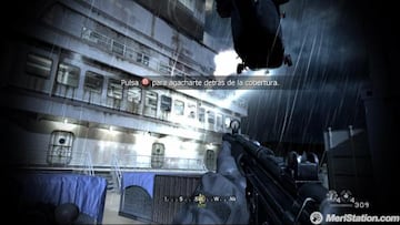 La renovación que se quiso presentar con el cambio de contexto y de look que ya hemos repasado no habría sido completo si no fuera precisamente por el cambio en la puesta en escena que se produjo respecto a las tres primeras entregas. Modern Warfare marcó un camino que se ha explotado en su secuela directa y en Black Ops. Es una película interactiva de una guerra enorme de la cuál nosotros formamos parte. Cuando hablamos de espectáculo nos referimos al acercamiento inevitable a momentos mucho más cinematográficos y sorprendentes a la hora de acompañar a la mecánica de juego en sí que en el pasado. Jugar no lo es todo, abrir la boca y hacernos sentir partícipes de una sucesión de acontecimientos excepcionales permitió que Modern Warfare entrara por la vista desde un primer momento y que sus sucesores lo hayan ido consiguiendo también.