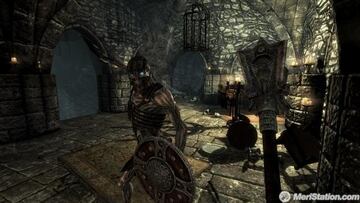 Y no solo el planteamiento y resolución de los encargos complejiza la nueva jugabilidad, también lo hará la propia localización donde haya que llevarlos a cabo y las partes intervinientes. Las mazmorras del primer juego fueron creadas por un solo desarrollador, utilizando ciertos modelos clónicos para todas y generación automática de estancias. Ahora, en Skyrim, ocho personas se han dedicado de lleno durante más de tres años al diseño de las nuevas, de manera totalmente manual, lo que en la partida se ve perfectamente reflejado en cuanto nos adentramos y vemos toda la irregularidad y diferencia entre las más de 120 que el vasto mapeado dispondrá. En jugabilidad este trabajo a mano, variado y conjunto se traduce en retos distintos, puzles de todo tipo y arquitecturas ingeniosas, nunca antes valoradas en otros TES. Si a esto sumamos la posibilidad de analizar con lupa cada objeto del inventario para resolver ciertos rompecabezas u obtener datos de dichos objetos, la entrada y salida de NPCs colaboradores, o los cambios que pueden ocasionar fenómenos meteorológicos o un ataque de dragón, la variedad y la profundidad jugables están servidas en bandeja.
