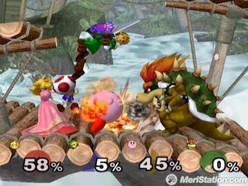Es difícil imaginar un mejor juego bandera para una consola Nintendo que un Super Smash Bros, y Melee es además un caso especial, siendo el primer gran juego con el que contó la plataforma y también el más popular de la misma, con unos ocho millones de copias, casi un millón por encima del segundo clasificado, el siempre popular Mario Kart. Hay pocos juegos que tengan el valor representativo de Melee, con tantos personajes clásicos, escenarios sacados de la rica historia de la compañía y una banda sonora que llega al corazón de los aficionados Nintendo. La saga en sí tiene sus orígenes en Nintendo 64, pero con la entrada de Gamecube era más que obvio que la compañía quería poner su serie de lucha en un nuevo nivel, para lo que no dudaron en subir la apuesta a un nivel completamente diferentes; más personajes, más objetos, más movimientos, escenarios nuevos dotados de profundidad, sorpresas y una gran personalidad... a todo eso hay que añadir la capacidad de personalizar en gran medida todas las opciones de juego para configurar partidas multijugador al gusto de todos, pudiendo introducir reglas sobre los objetos que caían, la resistencia de los luchadores y muchas otras características que daban incluso más vida al juego.