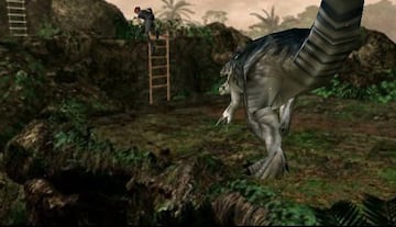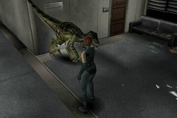 También era posible que un raptor nos persiguiese a través de diferentes estancias, aunque hubiese que atravesar puertas, lo que añadía unos momentos de adrenalina a un gameplay que como decimos prefería decantarse un tanto más por resolver puzles que matar bichos, aunque cuando se ponía espectacular –el combate contra el T-Rex en el patio de la base- lo era considerablemente. Pero entre los mejores añadidos cabe encontrar lo que no tenía Resident Evil: La posibilidad de poder apuntar y disparar al tiempo que corríamos.