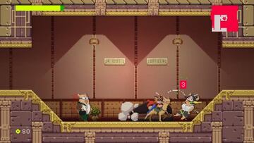 El estilo visual utilizado funciona a las mil maravillas, con un estilo PíxelArt muy conseguido por el divertido diseño de personajes y sus trabajadas animaciones. Los escenarios y la variedad entre ellos, así como varios efectos, hacen el resto junyo a una banda sonora repleta de ritmo y variedad.