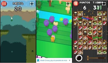 El juego tiene la posibilidad de abrir algunas zonas usando nuestro móvil. En la pantalla encontraremos un código QR, y al escanearlo con nuestro móvil o tablet nos abre una aplicación web. Esta aplicación puede ser la versión de un juego móvil hiper conocido como Flappy Bird, Crossy Road, o Candy Crush por poner algunos ejemplos, o, si lo escaneamos en un terminal de Pigcoins, nos desbloqueará el área en la que nos encontremos y, como comentamos anteriormente, podremos conseguir monedas para canjear en el juego.