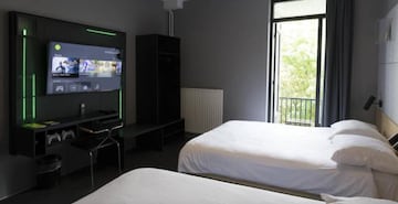 “Quería ofrecer un espacio donde los viajeros y los gamers se sintieran como en casa”, comenta Salmanovich en el vídeo sobre estas líneas. The Arcade Hotel contiene consolas retro en sus habitaciones, ofrece una gran biblioteca de juegos para usar sin coste adicional y cuenta con zonas comunes para jugar con nuestros amigos, como si de un antiguo locutorio se tratara. Sus pasillos y habitaciones están cargados de dibujos y guiños a la industria, así como luces de neón, como si por momentos quisiera que experimentáramos cómo sería vivir dentro de una torre de PC. Su precio oscila entre los 125 y los 350 euros por noche, en los que se incluye acceso a su biblioteca de cómics y su catálogo de plataformas, entre las que encontramos las principales marcas del sector: Xbox, PlayStation, Nintendo, Atari...