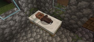 - Receta para construir una cama: colocamos tres bloques de lana en la parte superior (los “cosechamos” de las ovejas caídas) y tres de madera (cualquier tipo vale) en la parte inferior.