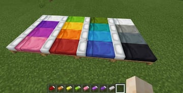 Lo más fácil es crear camas de color blanco, marrón o negro, ya que las ovejas que encontraremos de forma salvaje tienen ese tipo de lana. Sin embargo, si queremos personalizar nuestra colcha de cama virtual y que sea todavía mejor, tenemos disponibles hasta trece variantes más (16 en total). Una amplia paleta de colores que podemos conseguir al teñir los bloques de lana blanca con varios tintes. Para hacerlo simplemente colocamos el objeto en cuestión a la derecha del bloque de lana, en el banco de trabajo, y así lo obtenemos coloreado del tono que prefiramos.
