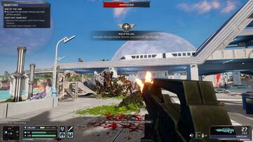 A nivel jugable, estamos ante un título que bien podría haberse lanzado a principios de los 90. Tiros en primera persona, botiquines para curarnos y munición y armas desperdigadas por el escenario para pertrecharnos. El control es muy clásico y satisfactorio, tanto en el movimiento como en el manejo de las armas, contundente y preciso. Contamos con una recarga activa a lo Gears of War, y la posibilidad de deslizarnos con un dash pulsando agacharse al correr, y la protagonista cuenta con un medidor de esfuerzo que se gasta al realizar acciones rápidas y se recarga automáticamente.