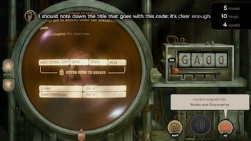 En ningún momento se nos explica directamente nada de esto y tendremos que ir desentrañando el misterio por nosotros mismos, sacando dichos códigos de la información que leemos en los documentos. La manera de interactuar con el dispositivo para introducir los códigos es muy sencilla, a través de una suerte de dial, controlándose perfectamente el juego tanto con pad de control como con ratón. Algo a priori tan sencillo se emplea de maravilla para plantear puzzles muy interesantes y sorprendentemente variados. Las dos iniciales de un personaje, junto con un año significativo en su vida se convierten en el código que da acceso a un documento vital para desentrañar el misterio, por poner un ejemplo.