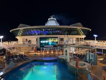 ¿Es el barco adecuado para relajarse y desconectar? Absolutamente. Una de las características que más valore es la piscina del Solarium con su techo de cristal retráctil. Esto significa que puedes disfrutar de un chapuzón y relajarte “al aire libre” sin importar si afuera está lloviznando. Además, el barco cuenta con actividades que equilibran la adrenalina y el ocio: