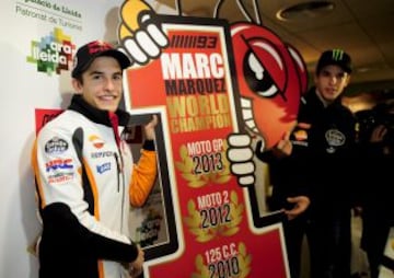 La localidad de Cervera se volcó, a pesar de la lluvia, en el recibimiento del Campeón del Mundo de MotoGP. Marc con su hermano Álex.