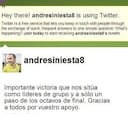 Iniesta agradece el apoyo de la afición en su perfil de Twitter