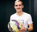 Griezmann posa con el balón del hat trick de San Mamés