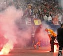 El momento justo en el que los hinchas lanzaron las bengalas