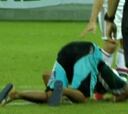 Un aficionado salta al campo y besa los pies a Fred