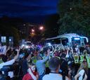 Cientos de aficionados en la llegada del Madrid al hotel de Kiev
