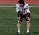 Messi no entrenó hoy y Maradona probó en el once con Pastore