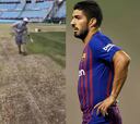 Griezmann dio conferencia de prensa con la bandera uruguaya