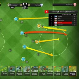 - En los partidos, toma decisiones en tiempo real: dibuja tus propias jugadas sobre el terreno de juego, ordena a tus jugadores que jueguen por las bandas, que presionen al adversario...
