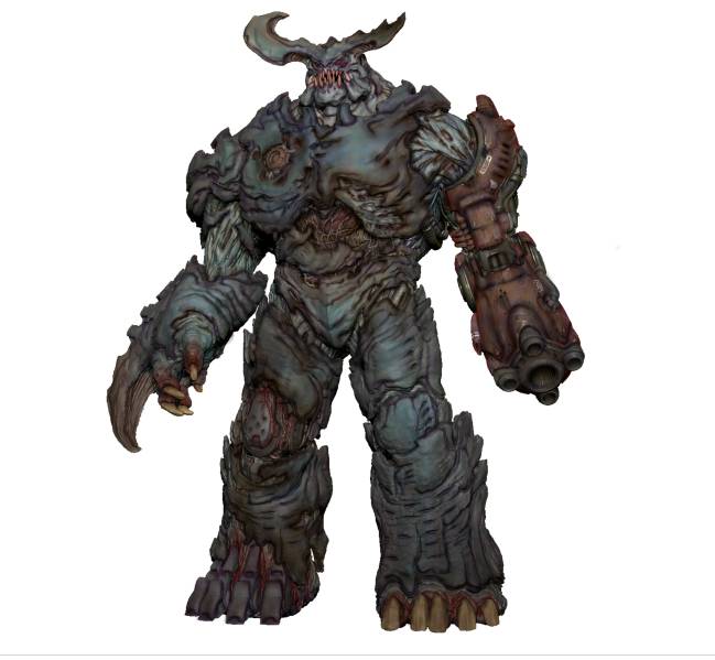 Una de las cosas que más me satisfizo en este proyecto fue la creación de este demonio. Hicimos muchas pruebas antes de conseguir desarrollar el diseño final. Tomamos el Revenant original como fuente de inspiración, al tiempo que añadimos nuevas y modernas ideas, lo cual fue la clave para recrear este demonio. La idea de un esqueleto demonio que corre y lleva una mochila cohete y un montón de armas puede sonar algo estúpida, pero utilizando nuestra experiencia artística nos las arreglamos para hacer que este demonio tuviese un diseño verosímil y que diese miedo, pero lo mejor es que conseguimos que fuese icónico.