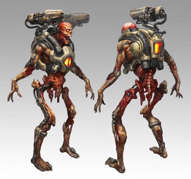Muchos de los monstruos que aparecen en Doom pretenden dar la sensación de estar muertos pero permanecer lúcidos al mismo tiempo. Este soldador deambula en busca de un buen lugar para prenderse fuego a sí mismo. Esta representación busca representar la personalidad, así como el diseño del personaje.