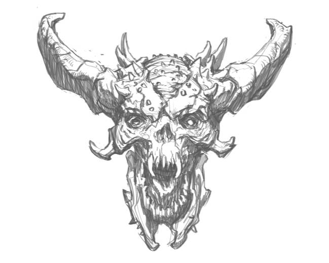 Mi primera tarea en el proyecto fue ocuparme del Cacodemonio diseñado por Hugo Martín. El 'Caco' es un demonio muy icónico por lo que era importante no solo mantener su atractivo original, sino también evocar un aspecto moderno feroz. Originalmente, unos tentáculos brotaban de su espalda, pero optamos por usar cuernos clásicos con el fin de crear una silueta más agresiva.
