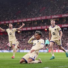Así celebró Lamine su gol en San Mamés