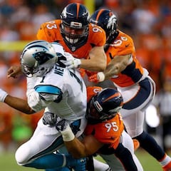 Pues bien, tras estas dos jugadas mantuvo su sangre fría, su plan, su instinto en el pocket y su "sí, señor" a lo que mandase Kubiak. Nunca el héroe, pero tampoco el villano, de la victoria de su equipo. 178 yardas en una eficiente tarde de 69% de completados, 18/26, con un TD de pase y las dos citadas intercepciones.